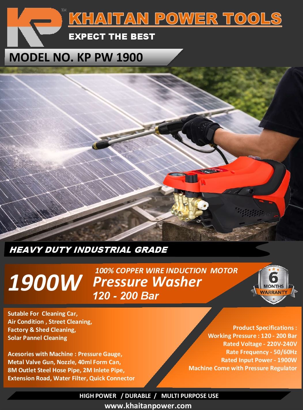 • Heavy Duty Car Washer with High Power 1900W & 90MM Size Motor